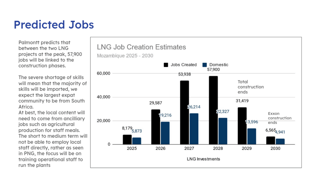 However, the critical challenge lies in ensuring Mozambicans can meaningfully participate in this economic transformation beyond the limited construction phase employment.